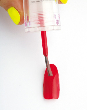 1、先把整片指甲涂上红色指甲油。