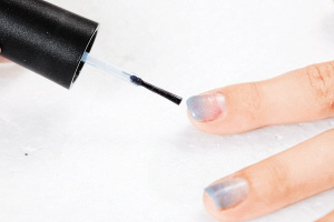 扫上一层蓝色指甲油作打底