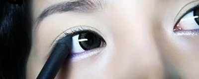 用黑色眼线笔描画一条黑色内眼线