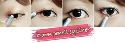step 5 用眼线笔沿着睫毛根部描画,从下眼头画至下眼尾,越靠近眼头的位置眼线越细,眼尾晕染添满小三角区。