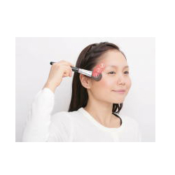首先在脸颊骨上涂上腮红,涂完后仍用这个刷子轻轻地刷一刷与脸颊骨成平行的②部分。最后在同样成平行的地方③处涂上一点点腮红。这样②和③的部分就会有种若隐若现的血红色。