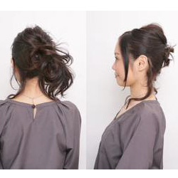将左边和右边的头发都往马尾辫处拧绕后用发夹夹住,关键在于旁边的头发都不能显得松散。
