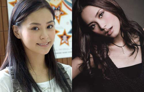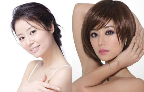 妆容点评:阿娇同样是出了名的素颜美人,淡妆非常清纯可爱,很有学生气。浓妆后的她更加成熟富有女人味,细长的眉一扫原有的稚气,圆型的可爱眼睛,在上、下眼尾以黑色眼线及深棕色眼影拉长,变的性感妩媚。