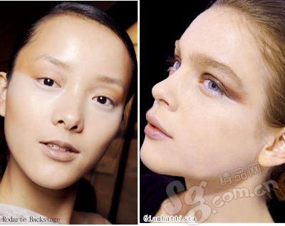 被誉为“好莱坞裸妆皇后”的Bobbi强调:“裸妆永远不会落伍,它精致纯粹、优雅迷人,总是看上去摩登感十足。”2009秋冬各大顶级秀场上,裸妆依然是最大亮点之一。而本季它更加强调的是色彩的温润感和高透明度,它甚至让你有一种如沐春风的感觉。在色彩重叠晕染时,下面的颜色也能隐约透出来。色泽浓郁而质感清透,弥漫着柔雾般的美感。