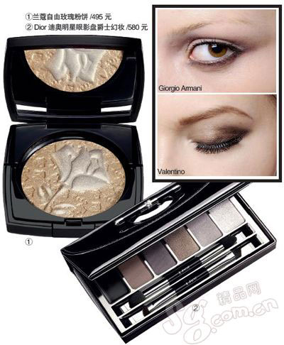①欧珀莱百变熠彩眼影/180元②兰蔻自由宣言眼影盘/495元