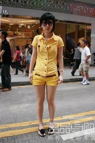 黄色短裤搭配黄色衬衫