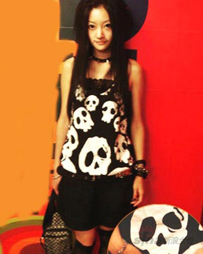 抢眼的骷髅头连衣裙充满时尚酷感,颇具强烈的色彩冲击。金属腰带的搭配符合整体的庞克风格,黑色网袜与黑色帆布组合与众不同。