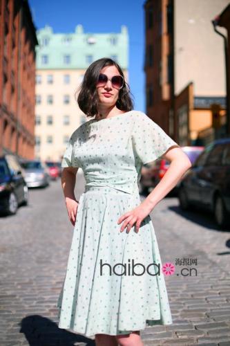 波点连衣裙很有设计感,充分体现了复古味道。