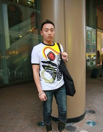 除了女生,男生也开始了短袖的时光,只不过他们的表现更简单,一件印花T加牛仔裤就是全部行头,不过这双靴子总算是与众不同之处。