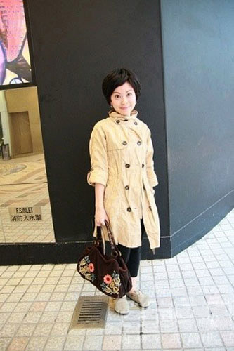 虽然不是很多见,但是但是有人愿意穿上中袖的风衣,还是款式非常别致的那一种,同样不输于活力的知性人文派,精致的短发和妆容也让你无可挑剔。