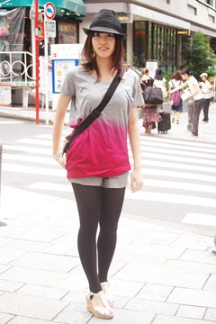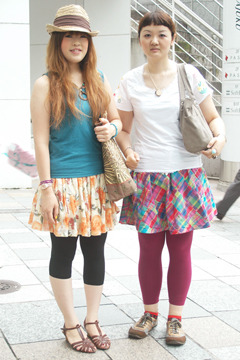 夏日短裙系列,彩色的legging或者彩色的吊带,都是提亮自己的很好办法