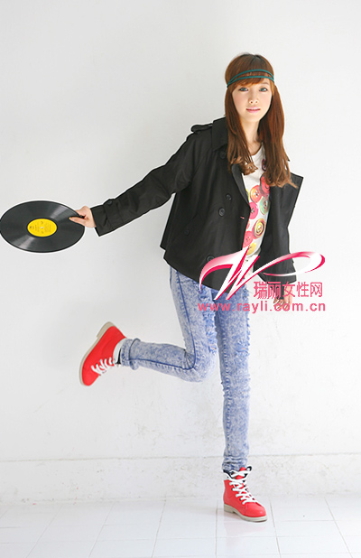黑色休闲外套使你看起来更娇小,搭配作旧牛仔裤,个性十足!