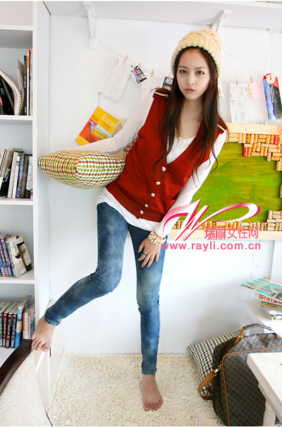 酒红色针织马甲让你尽显英伦风,搭配蓝色紧身牛仔裤,更是不二的选择哦!