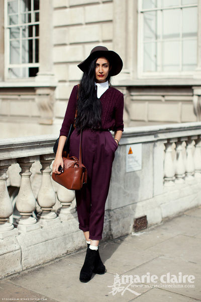 中性装扮有时不用刻意。这样的时尚把握不是轻易就可撷取。街拍达人们善于利用同色不同质地的服装搭配来吸引眼球。毛衫与哈伦裤的组合虽然常见,不过怎样将 “旧”衣穿出新感觉?裸靴的出现大大帮助解决这个问题:短袜的边+挽起的裤腿,这一部分小腿的外露,尽显春日的张扬与灿烂。